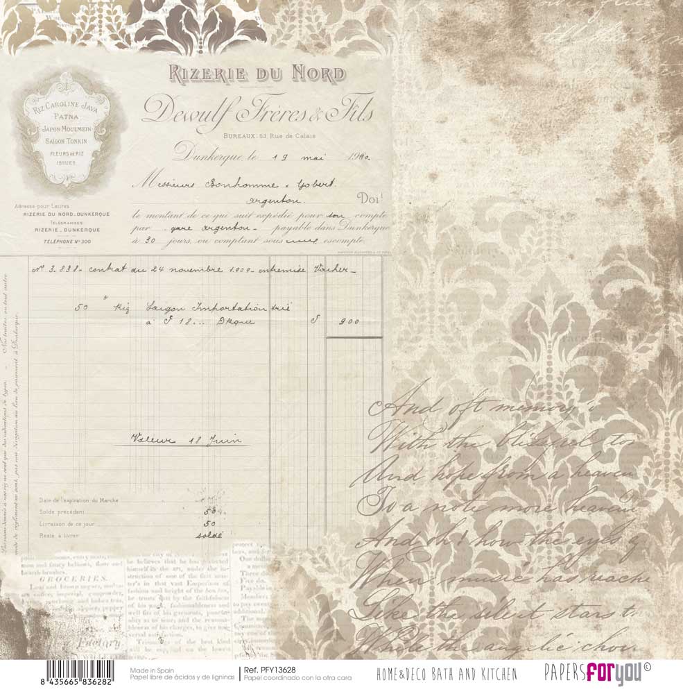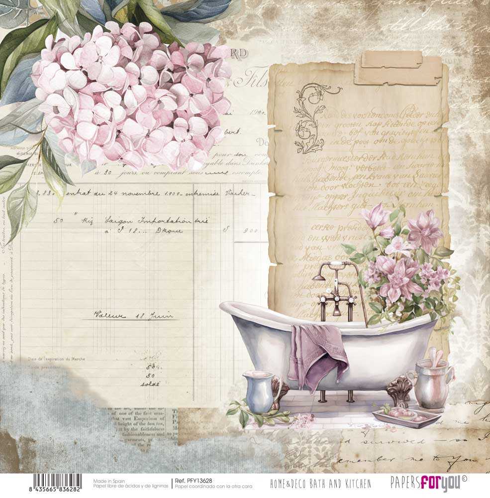 PFY-13628 – Papel Scrap doble cara 180gr 12″x12″ (Home&Deco Bath and Kitchen)- pack 12 ud.