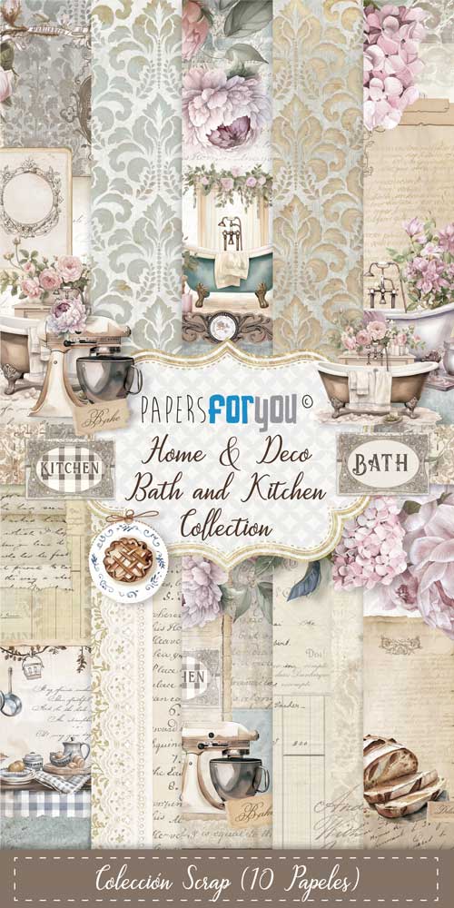 PFY-13705 – Colección 10 Papeles Scrap Una cara 180gr 6″x12″ (Home&Deco Bath and Kitchen)- pack 4 ud.