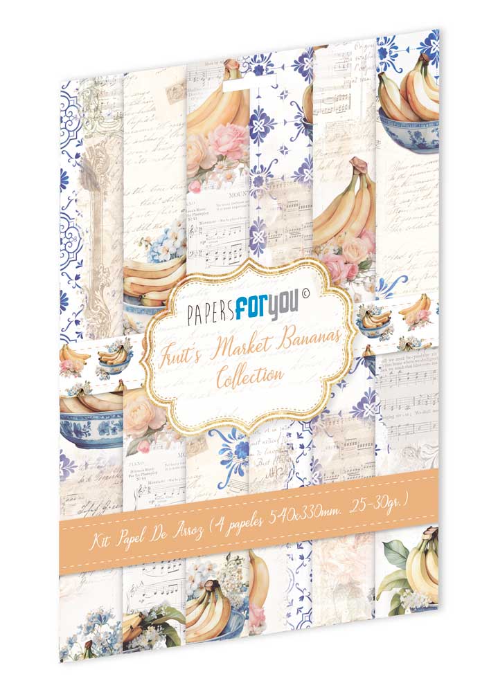 PFY-13766 – Colección de 4 Papeles Arroz 54×33 cm 25-30 gr. (Fruit´s Market: Bananas)- pack 4 ud.