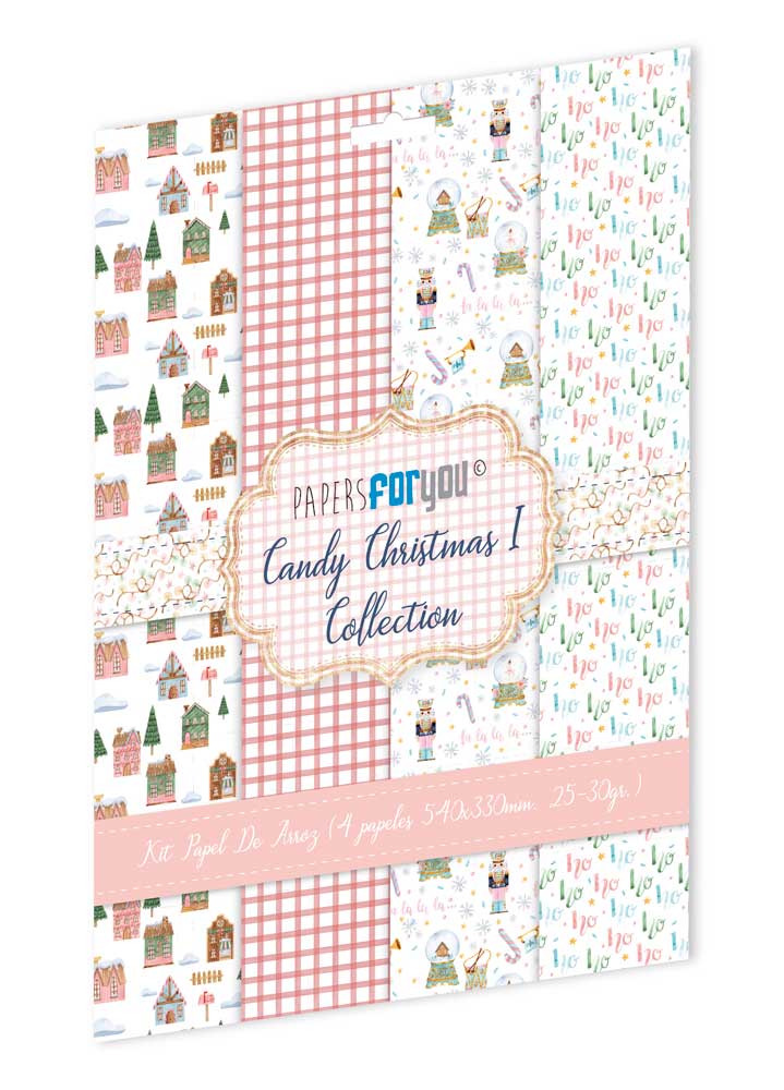 PFY-13844 – Colección de 4 Papeles Arroz 54×33 cm 25-30 gr. (Candy Christmas I)- pack 4 ud.