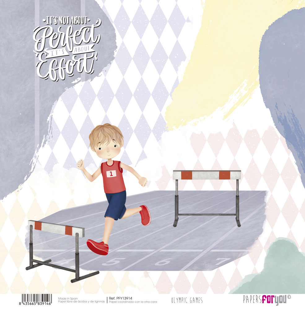 PFY-13914 – Papel Scrap doble cara 180gr 12″x12″ (Olympic Games Niño Rubio)- pack 12 ud.