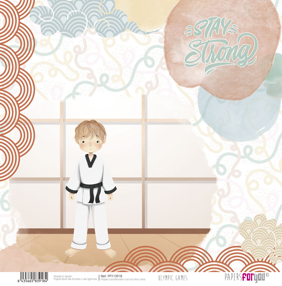 PFY-13918 – Papel Scrap doble cara 180gr 12″x12″ (Olympic Games Niño Rubio)- pack 12 ud.