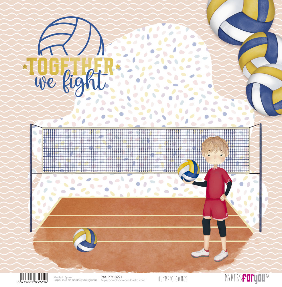 PFY-13921 – Papel Scrap doble cara 180gr 12″x12″ (Olympic Games Niño Rubio)- pack 12 ud.