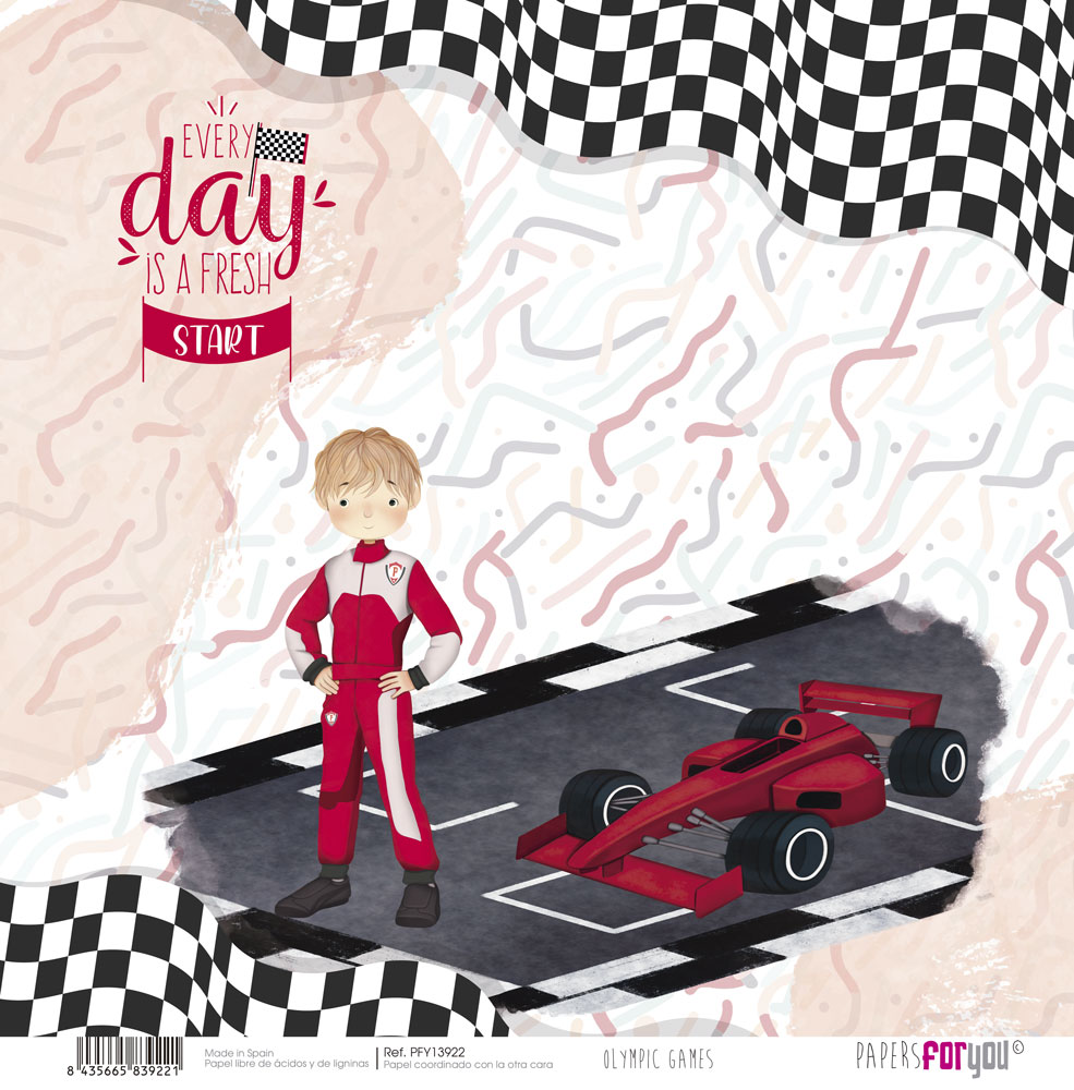 PFY-13922 – Papel Scrap doble cara 180gr 12″x12″ (Olympic Games Niño Rubio)- pack 12 ud.