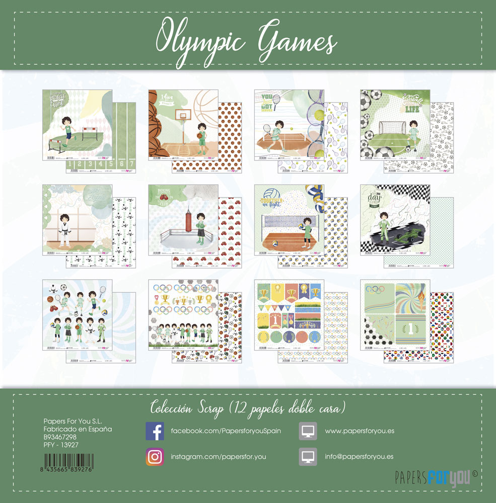 PFY-13927 – Colección 12 Papeles Scrap doble cara 180gr 12»x12» (Olympic Games Niño Moreno)- pack 3 ud.