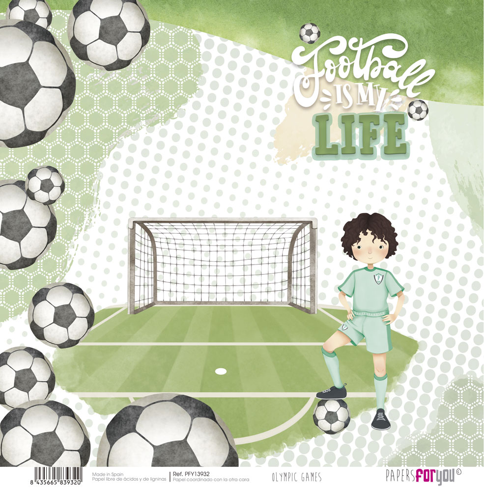 PFY-13932 – Papel Scrap doble cara 180gr 12″x12″ (Olympic Games Niño Moreno)- pack 12 ud.