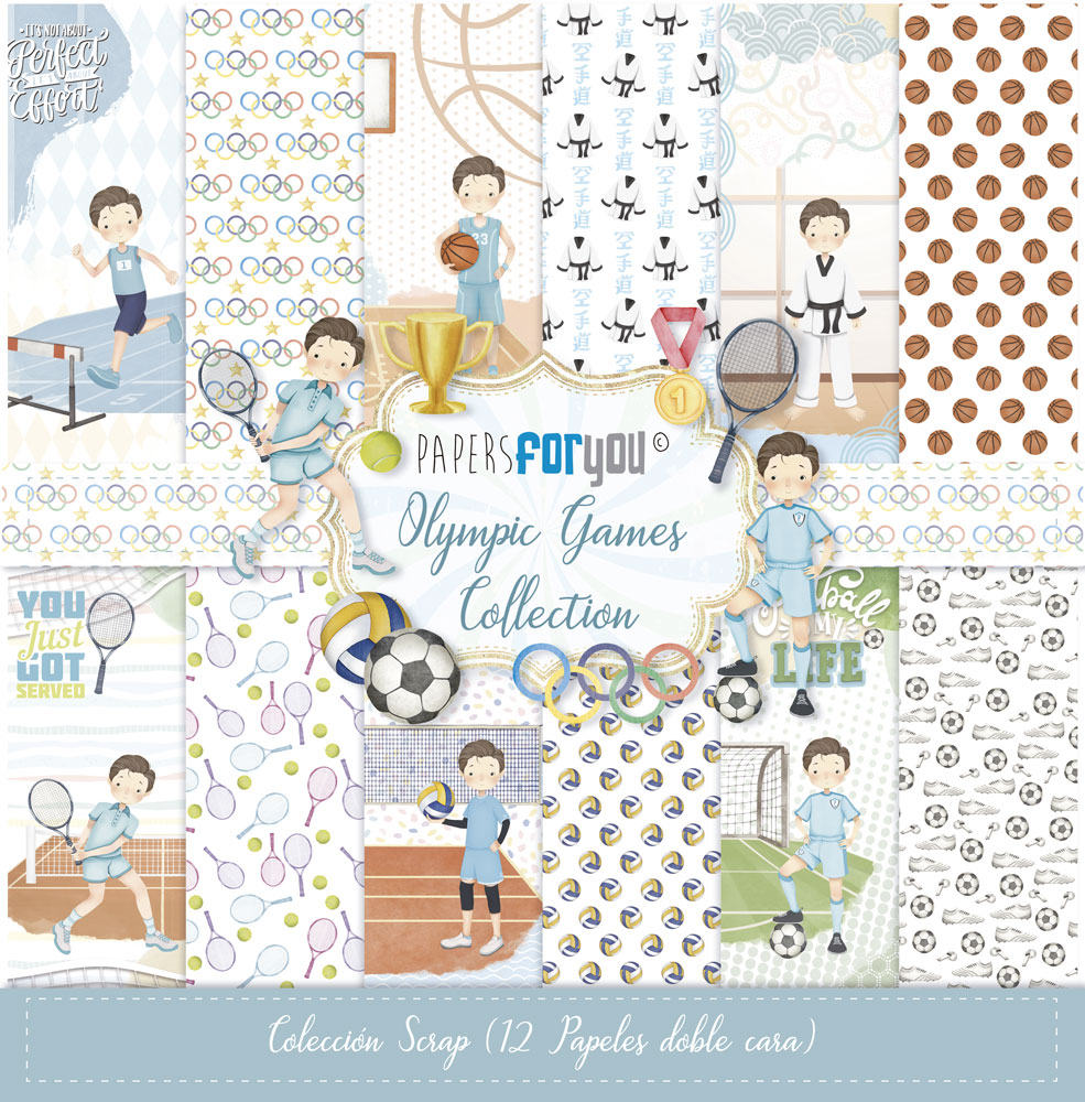 PFY-13942 – Colección 12 Papeles Scrap doble cara 180gr 12»x12» (Olympic Games Niño Castaño)- pack 3 ud.