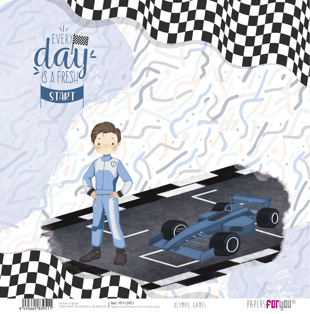 PFY-13951 – Papel Scrap doble cara 180gr 12″x12″ (Olympic Games Niño Castaño)- pack 12 ud.