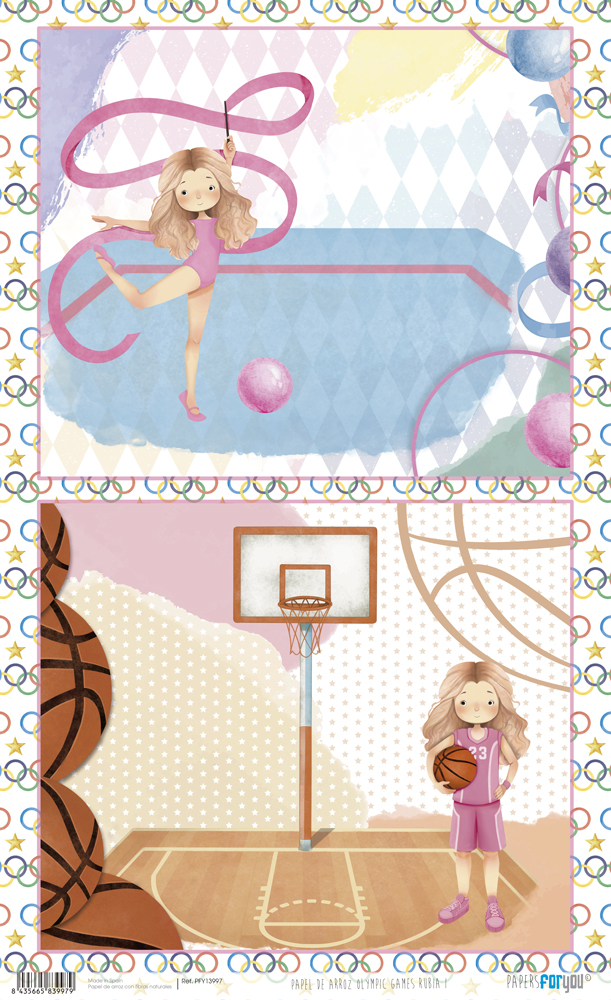 PFY-13997 – Papel Arroz 54×33 cm 25-30 gr. (Olympic Games Niña Rubia I)- pack 6 ud.