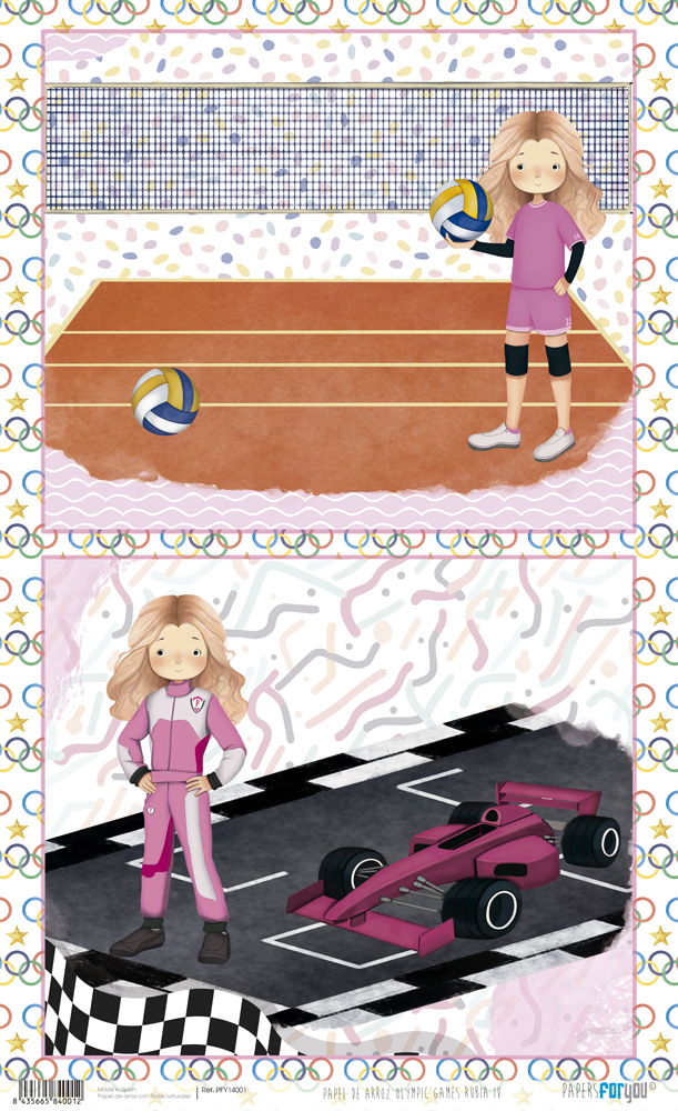 PFY-14001 – Papel Arroz 54×33 cm 25-30 gr. (Olympic Games Niña Rubia IV)- pack 6 ud.
