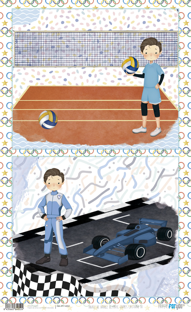 PFY-14052 – Papel Arroz 54×33 cm 25-30 gr. (Olympic Games Niño Castaño IV)- pack 6 ud.