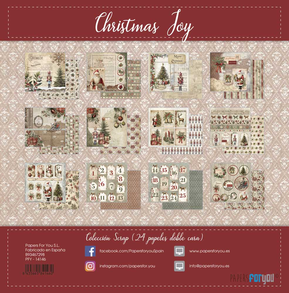 PFY-14146 – Colección 24 Papeles Scrap Mini doble cara 180gr 6″x 6″ (Christmas Joy)- pack 3 ud.