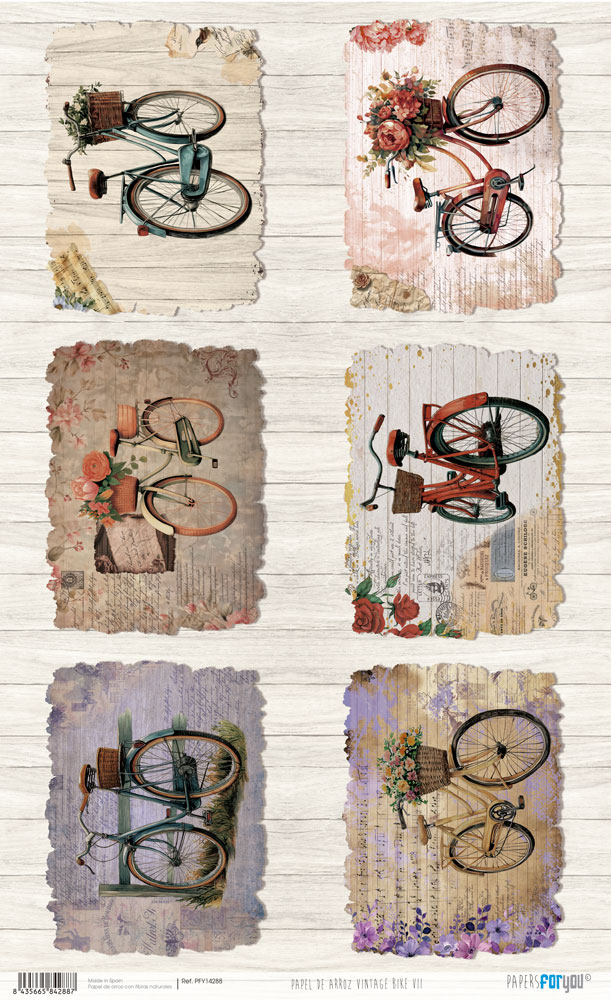 PFY-14288 – Papel Arroz 54×33 cm 25-30 gr. (Vintage bike VII)- pack 6 ud.