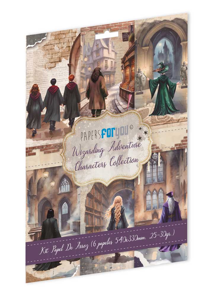 PFY-14413 – Colección de 6 Papeles Arroz 54×33 cm 25-30 gr. (Wizarding Adventure Characters)- pack 4 ud.