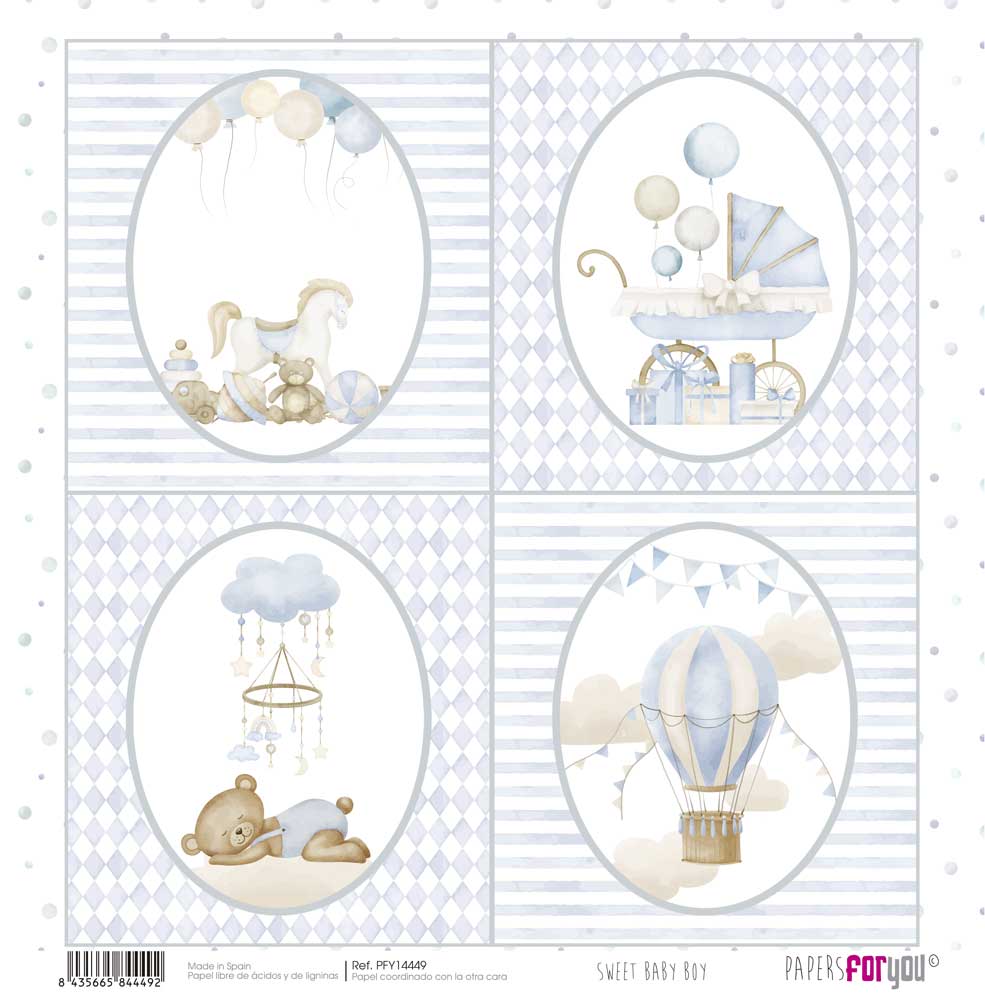 PFY-14449 – Papel Scrap doble cara 180gr 12″x12″ (Sweet Baby Boy)- pack 12 ud.