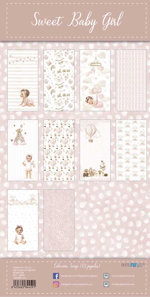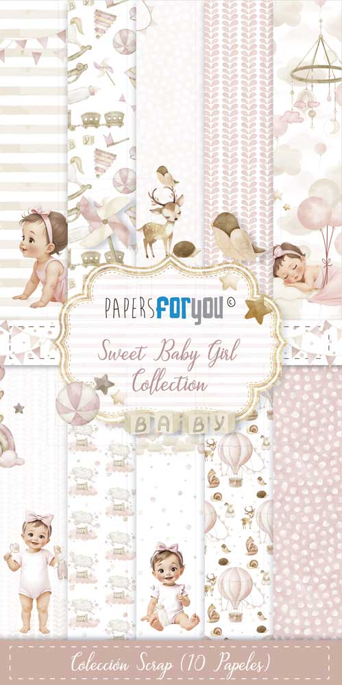 PFY-14459 – Colección 10 Papeles Scrap Una cara 180gr 6″x12″ (Sweet Baby Girl)- pack 4 ud.