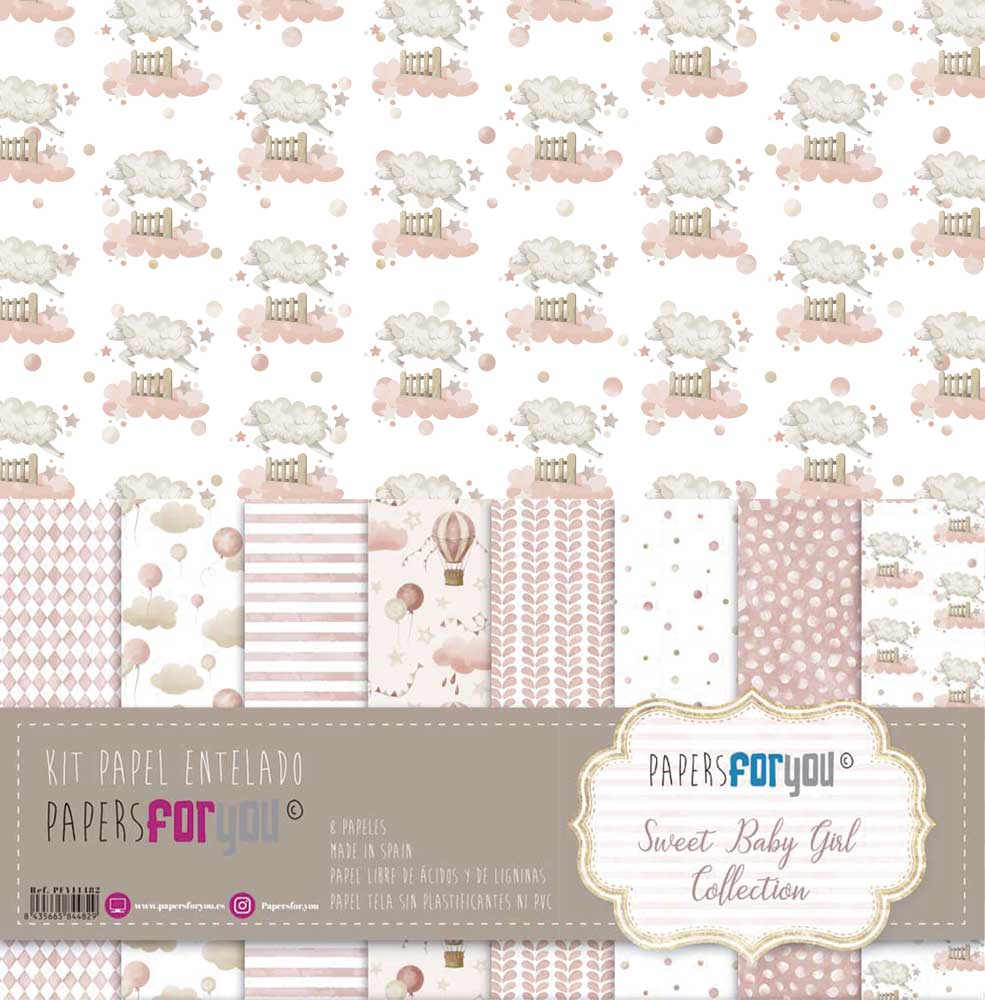 PFY-14482 – Kit 8 Papel Scrap Tela 125gr 12″x12″ (Sweet Baby Girl)- pack 3 ud.