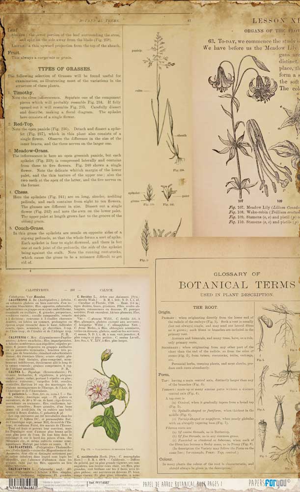 PFY-14587 – Papel Arroz 54×33 cm 25-30 gr. Botanical Book (Pages I)