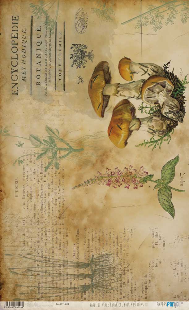 PFY-14594 – Papel Arroz 54×33 cm 25-30 gr. Botanical Book (Mushrooms III)