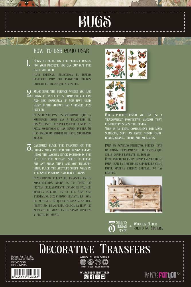 PFY-14636 – Decorative Transfers 20x30cm 8″x 12″ 3 Hojas (Bugs) – pack 2 ud.