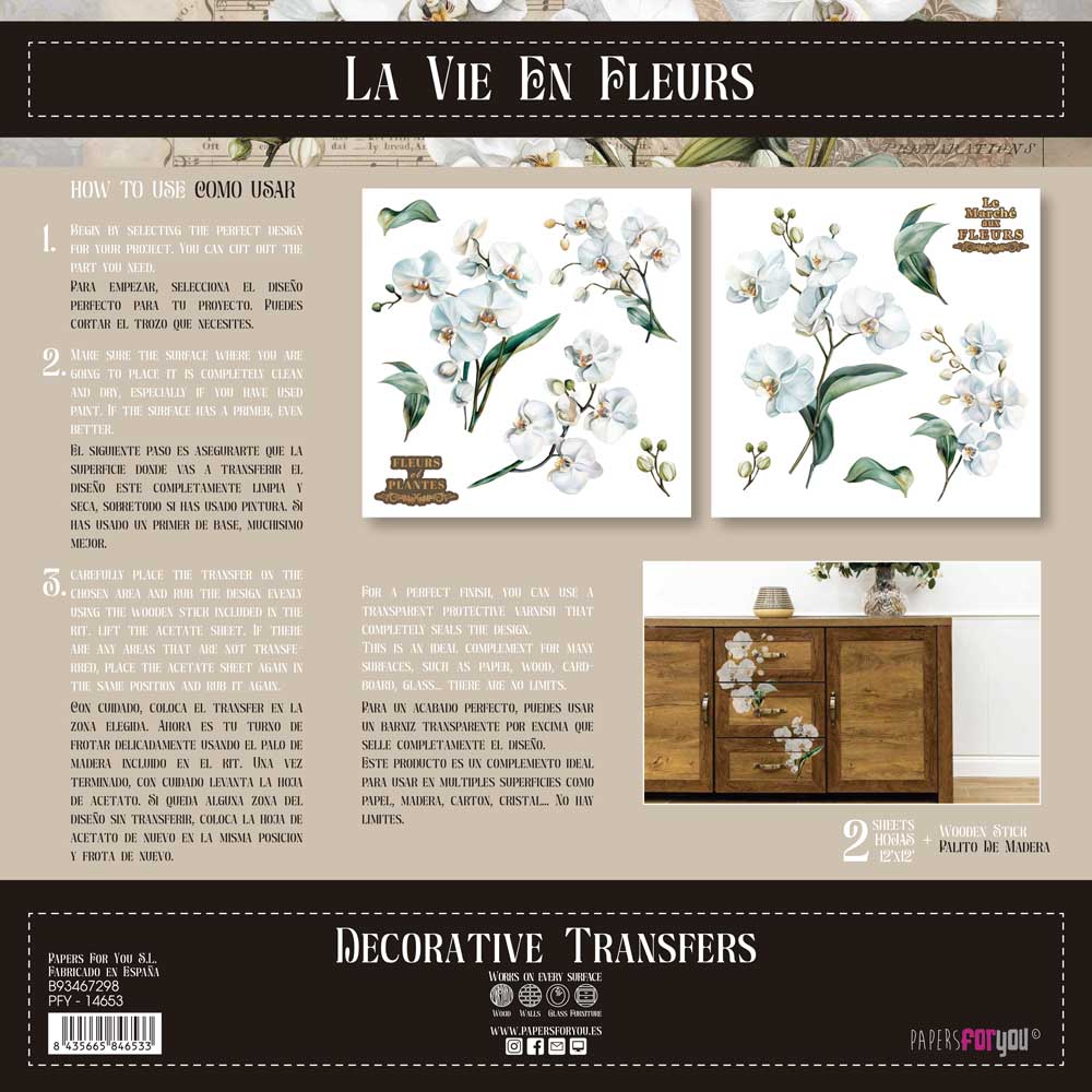 PFY-14653 – Decorative Transfers 30x30cm 12″x 12″ 2 Hojas (White Orchid) – pack 2 ud.