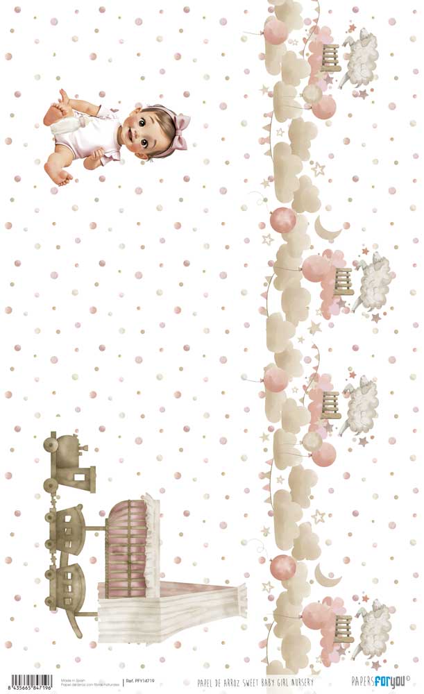 PFY-14719 – Papel Arroz 54×33 cm 25-30 gr. (Sweet Baby Girl Nursery)- pack 6 ud.
