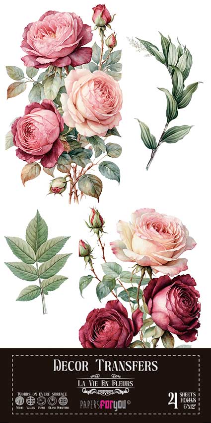 PFY-14772 – Decorative Transfers 15x30cm 6″x 12″ 4 Hojas (Rosé)- pack 2 ud.