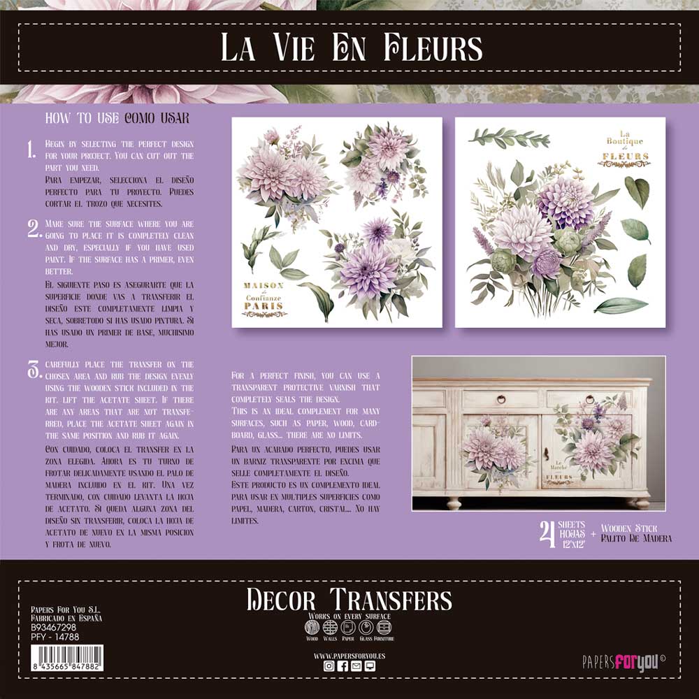 PFY-14788 – Decorative Transfers 30x30cm 12″x 12″ 2 Hojas (Dahlias)- pack 2 ud.