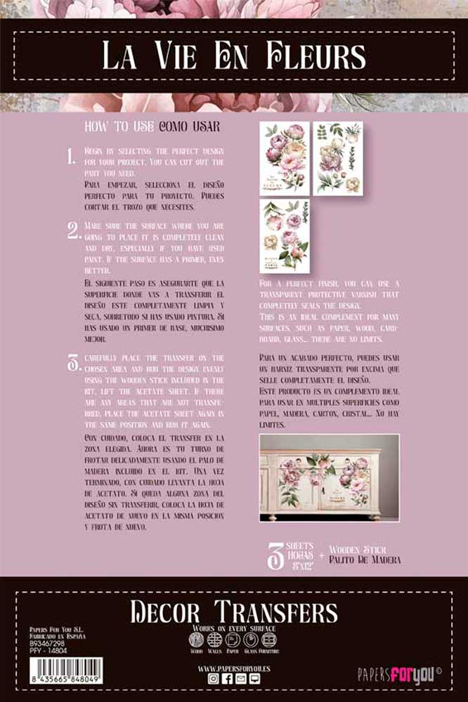 PFY-14804 – Decorative Transfers 20x30cm 8″x 12″ 3 Hojas (Peonies)- pack 2 ud.