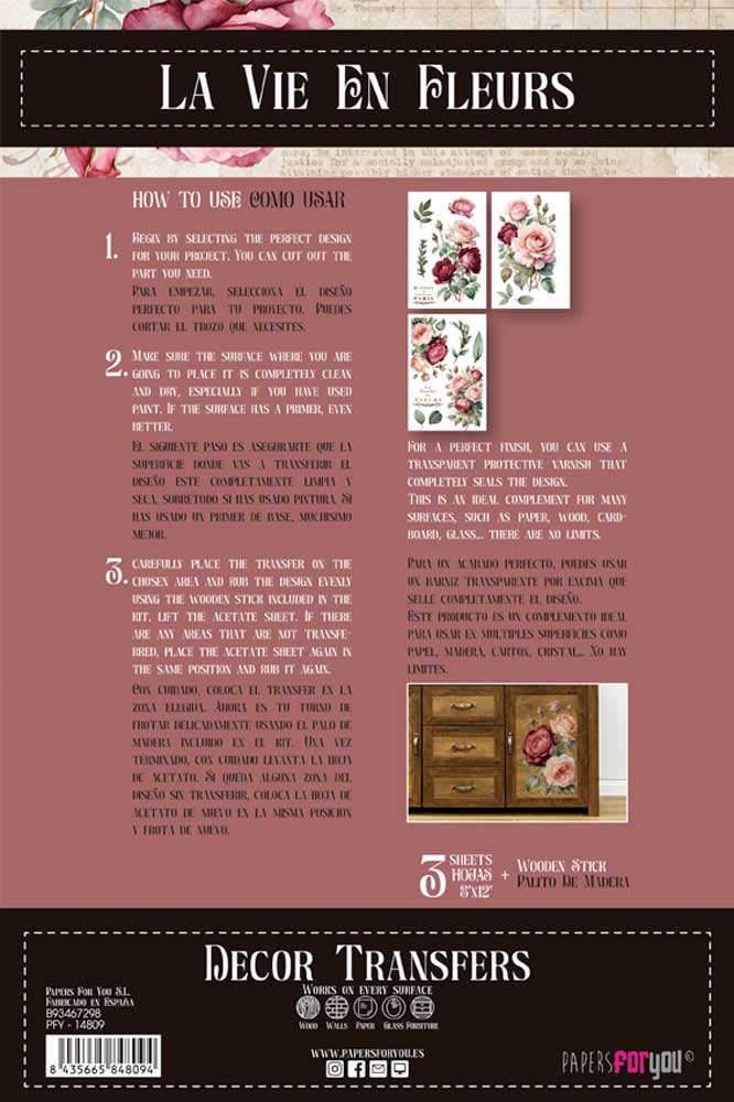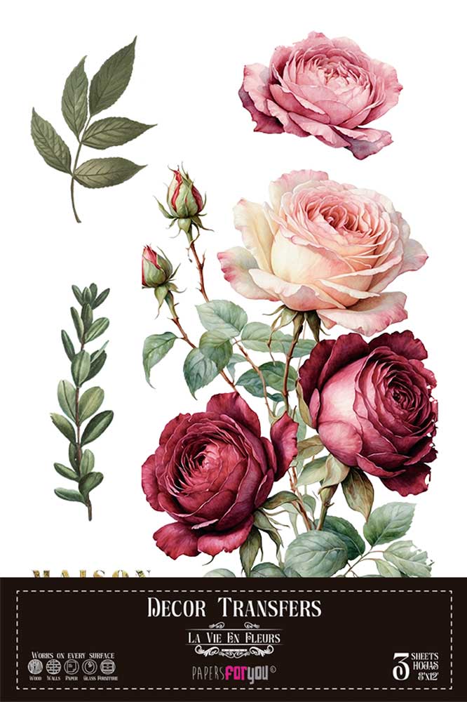 PFY-14809 – Decorative Transfers 20x30cm 8″x 12″ 3 Hojas (Rosé)- pack 2 ud.
