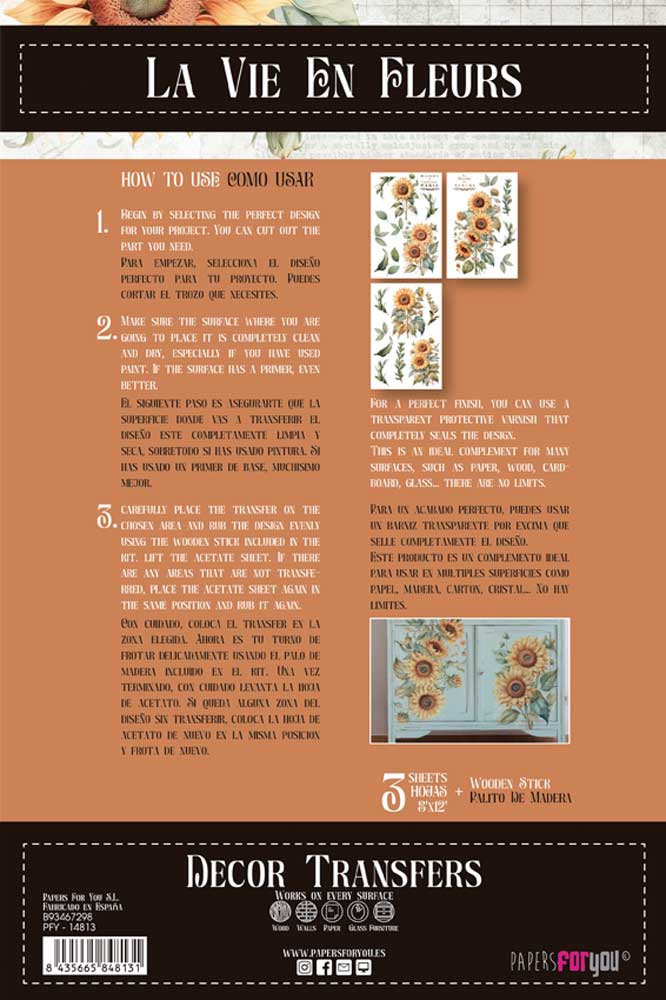 PFY-14813 – Decorative Transfers 20x30cm 8″x 12″ 3 Hojas (Sunflowers)- pack 2 ud.