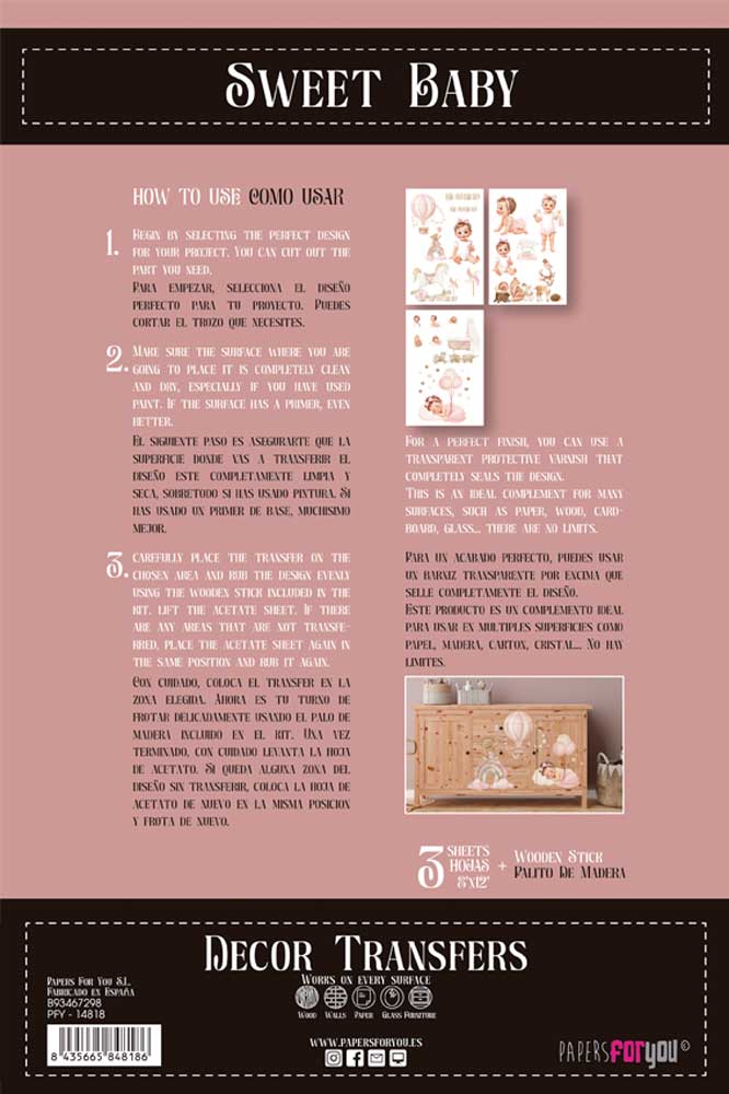 PFY-14818 – Decorative Transfers 20x30cm 8″x 12″ 3 Hojas (Sweet Baby Girl)- pack 2 ud.