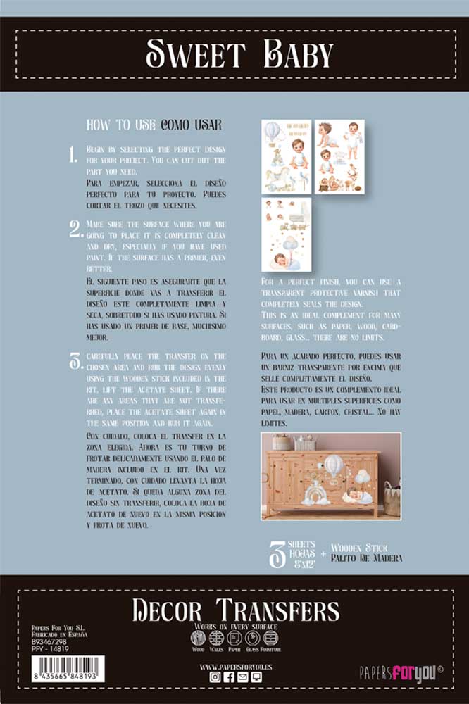 PFY-14819 – Decorative Transfers 20x30cm 8″x 12″ 3 Hojas (Sweet Baby Boy)- pack 2 ud.