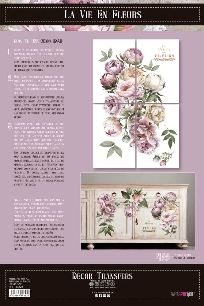 PFY-14823 – Decor Transfers 60x90cm 24″x 35″ 4 Hojas (Peonies)- pack 2 ud.