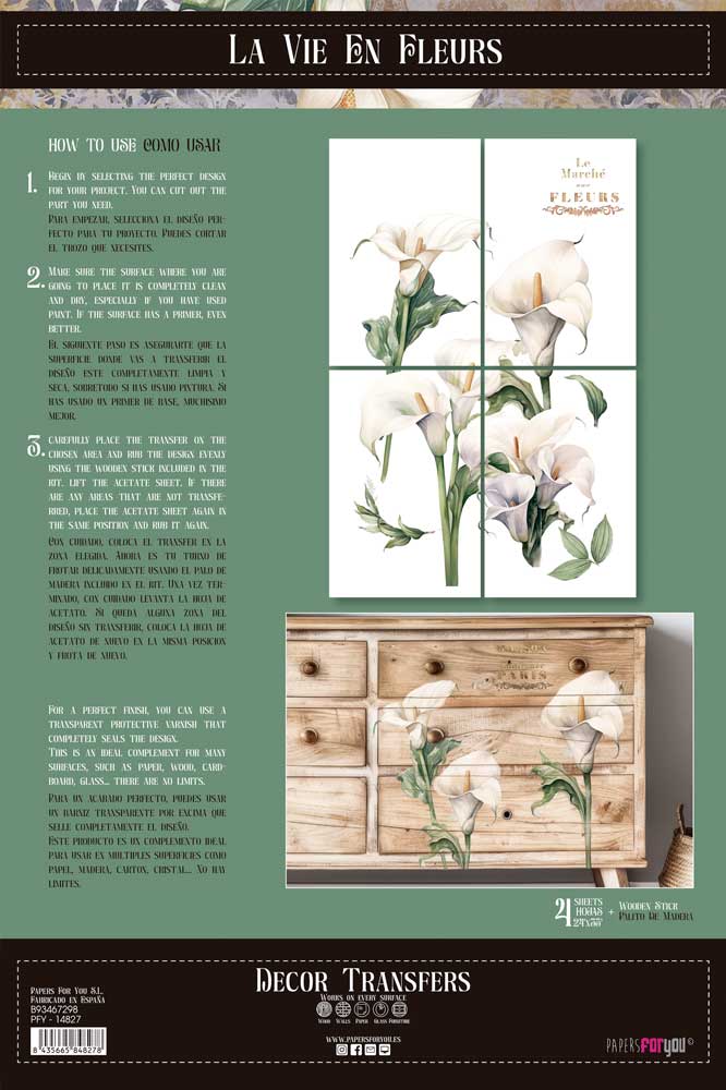 PFY-14827 – Decor Transfers 60x90cm 24″x 35″ 4 Hojas (Calla Lily)- pack 2 ud.