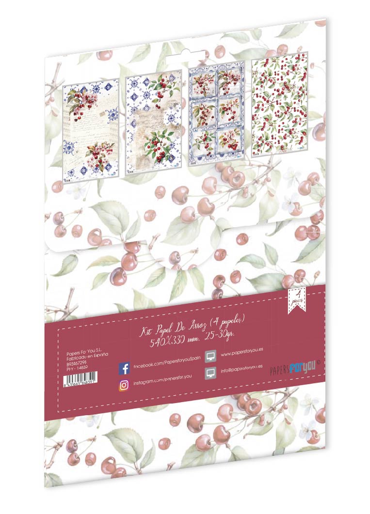 PFY-14839 – Colección de 4 Papeles Arroz 54×33 cm 25-30 gr. (Fruit’s Market Cherrys II) – pack 4 ud.