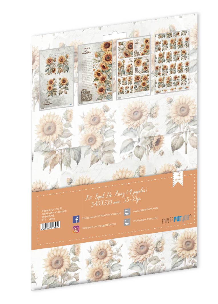 PFY-14846 – Colección de 4 Papeles Arroz 54×33 cm 25-30 gr. (Fruit’s Market Sunflowers II) – pack 4 ud.