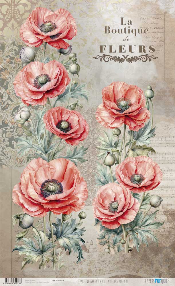 PFY-15078 – Papel Arroz 54×33 cm 25-30 gr. (La Vie En Fleurs Poppy II) – pack 6 ud.