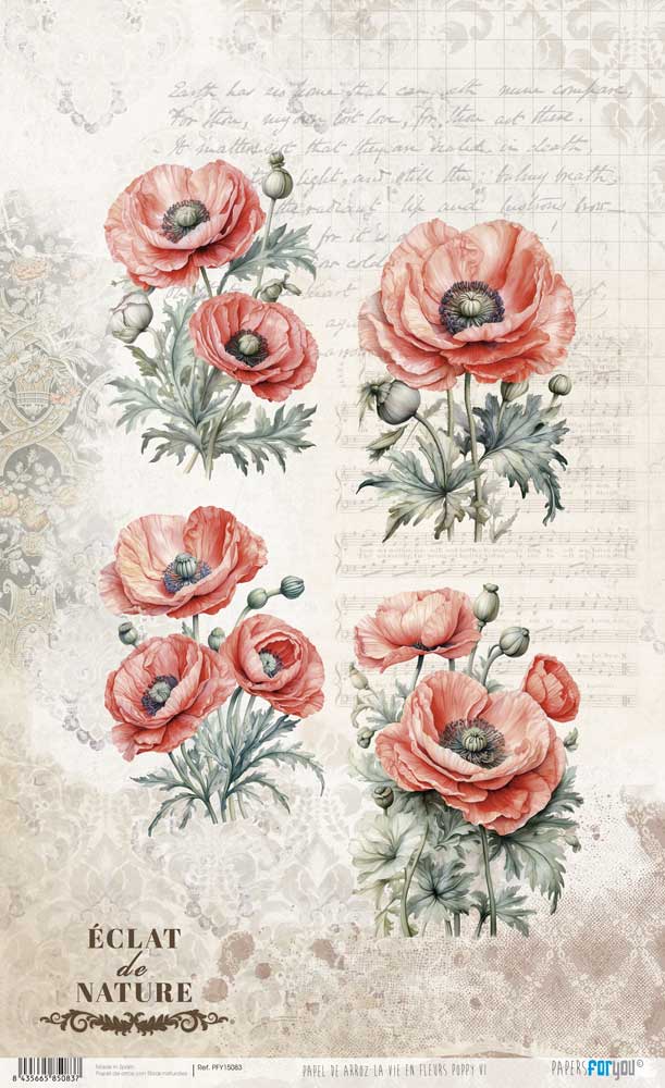 PFY-15083 – Papel Arroz 54×33 cm 25-30 gr. (La Vie En Fleurs Poppy VI) – pack 6 ud.