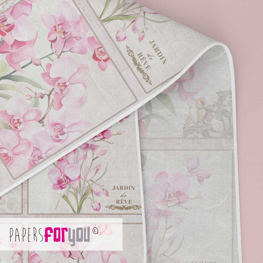 PFY-15095 – Papel Arroz 54×33 cm 25-30 gr. (La Vie En Fleurs Pink Orchid V) – pack 6 ud.