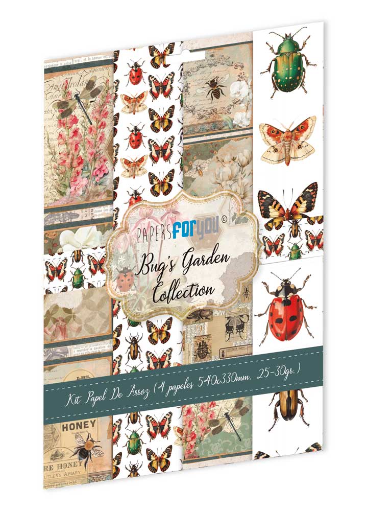 PFY-15114 – Colección de 4 Papeles Arroz 54×33 cm 25-30 gr. (Bug’s Garden) – pack 4 ud.