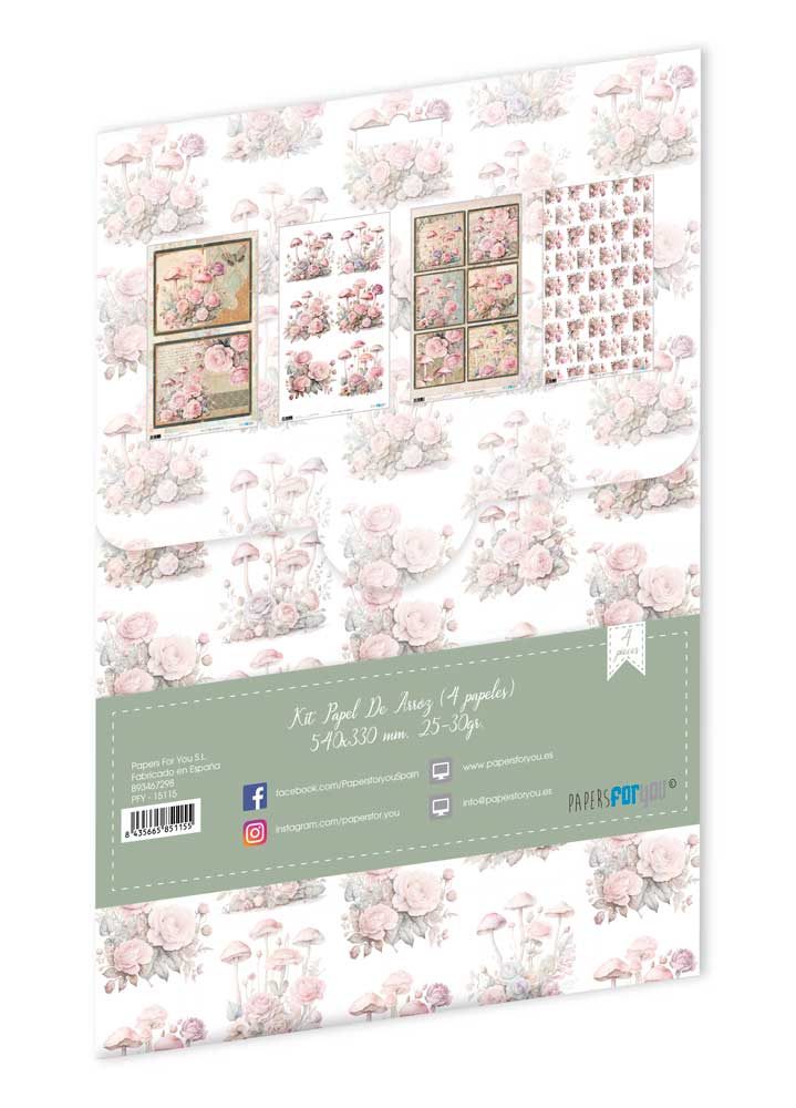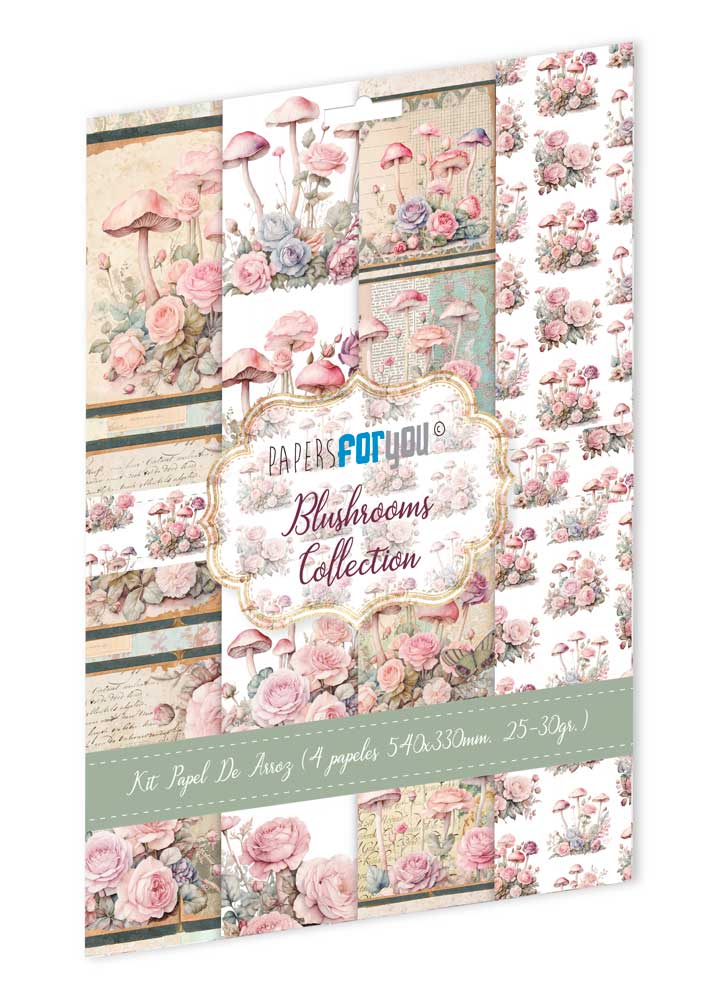 PFY-15115 – Colección de 4 Papeles Arroz 54×33 cm 25-30 gr. (Blushrooms) – pack 4 ud.