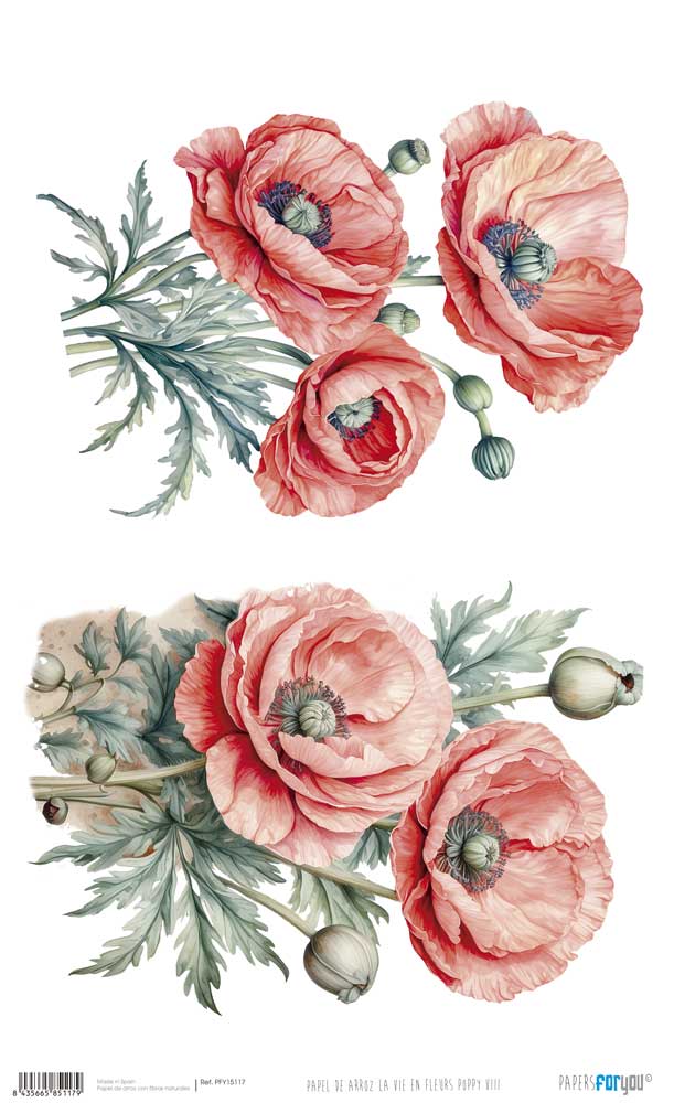 PFY-15117 – Papel Arroz 54×33 cm 25-30 gr. (La Vie En Fleurs Poppy VIII) – pack 6 ud.
