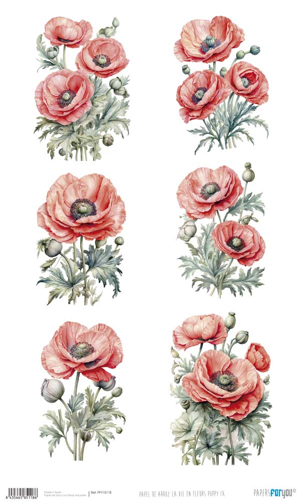 PFY-15118 – Papel Arroz 54×33 cm 25-30 gr. (La Vie En Fleurs Poppy IX) – pack 6 ud.