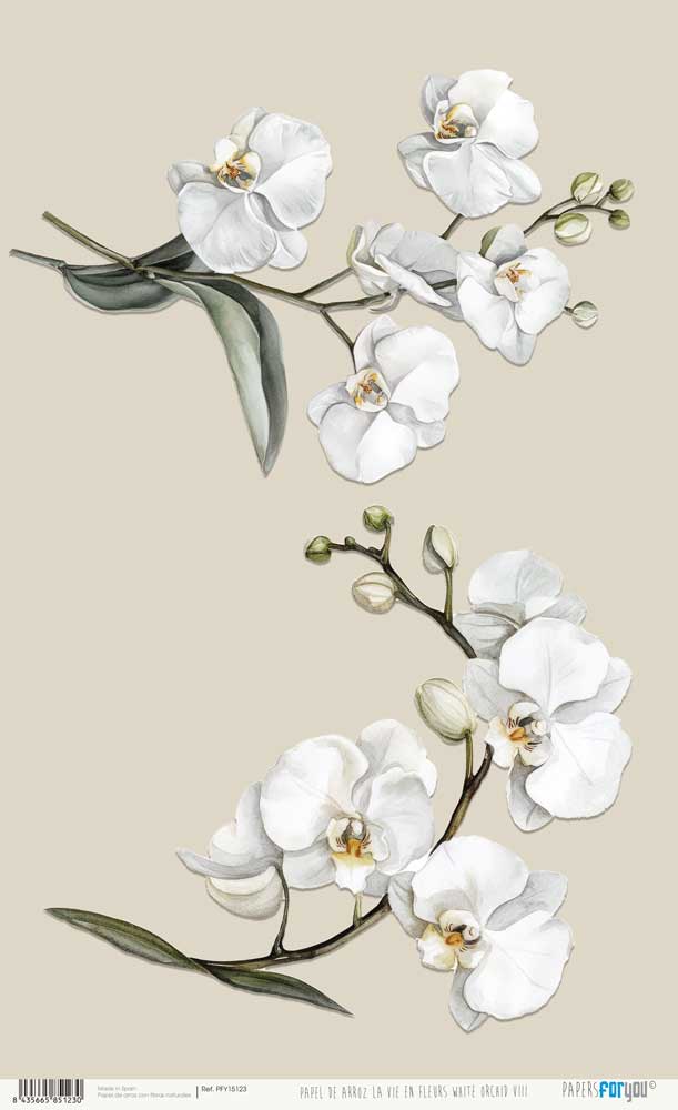 PFY-15123 – Papel Arroz 54×33 cm 25-30 gr. (La Vie En Fleurs White Orchid VIII) – pack 6 ud.