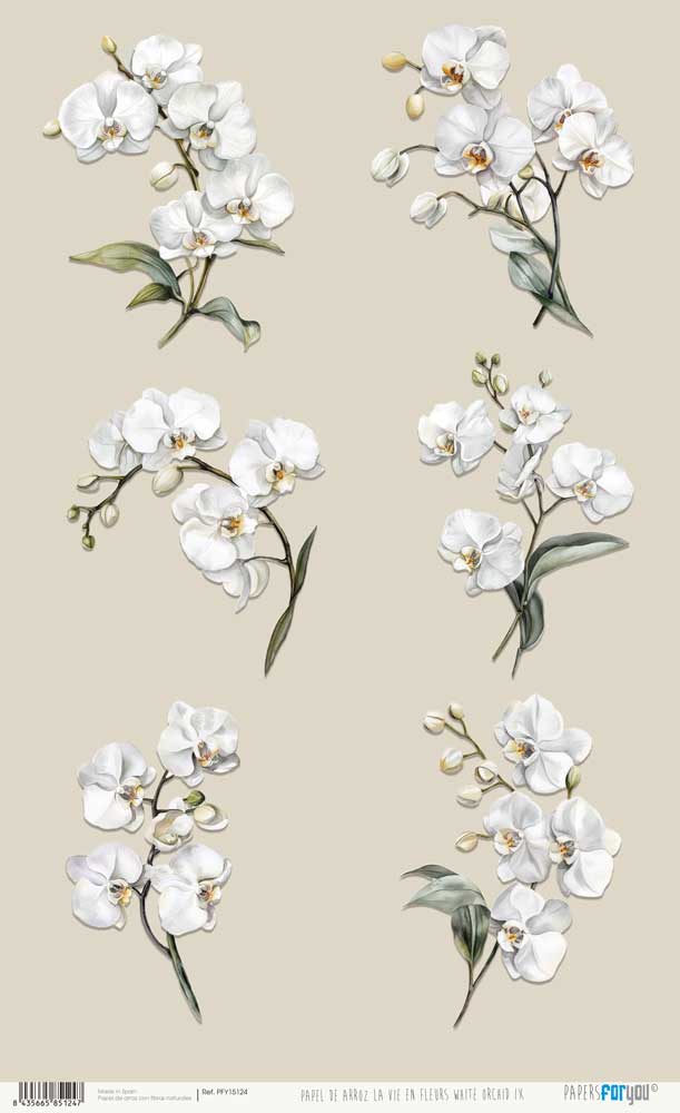 PFY-15124 – Papel Arroz 54×33 cm 25-30 gr. (La Vie En Fleurs White Orchid IX) – pack 6 ud.