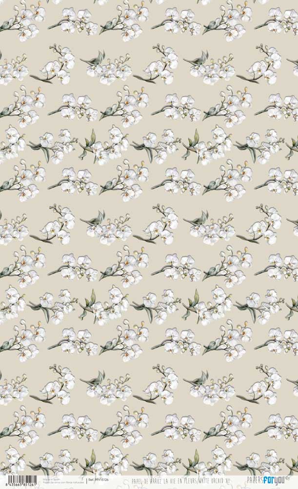 PFY-15126 – Papel Arroz 54×33 cm 25-30 gr. (La Vie En Fleurs White Orchid XI) – pack 6 ud.