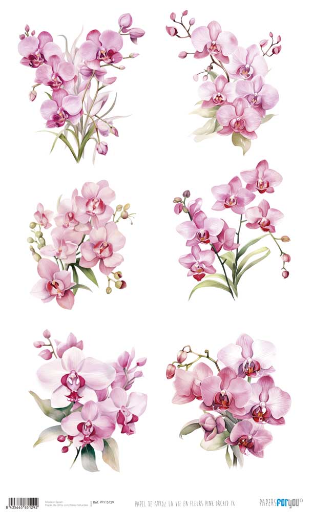 PFY-15129 – Papel Arroz 54×33 cm 25-30 gr. (La Vie En Fleurs Pink Orchid IX) – pack 6 ud.