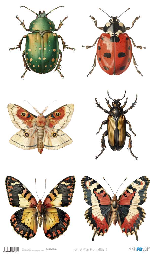 PFY-15135 – Papel Arroz 54×33 cm 25-30 gr. (Bug’s Garden IX) – pack 6 ud.