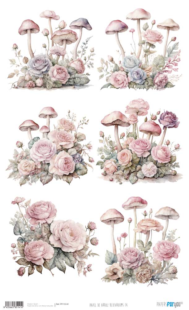 PFY-15141 – Papel Arroz 54×33 cm 25-30 gr. (Blushrooms IX) – pack 6 ud.